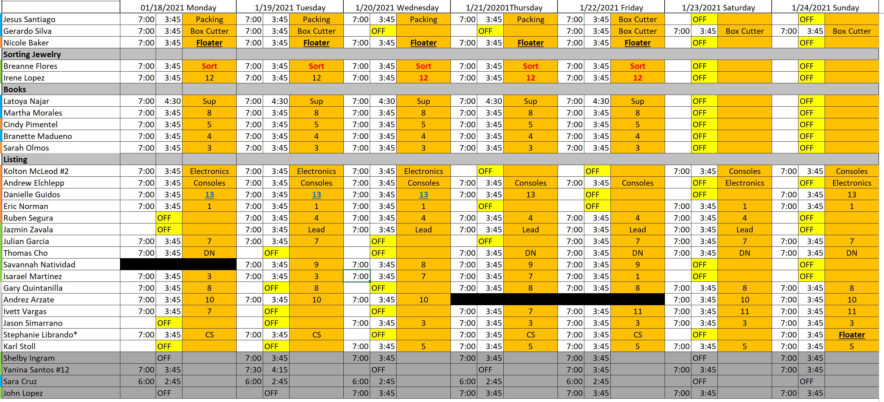 Schedule Wk Ending 6-6-2021 (Memorial Day Week)