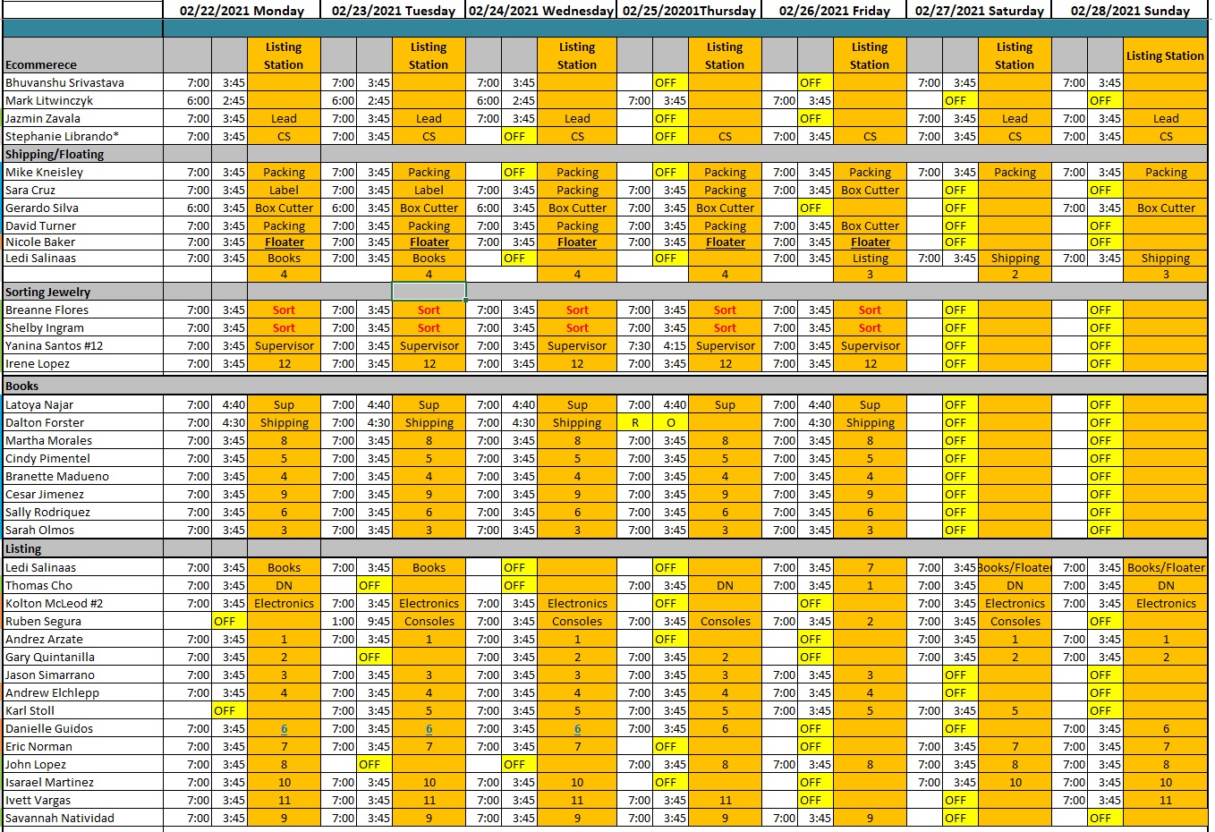 Schedule Wk Ending 4-4-2021 Easter Weekend