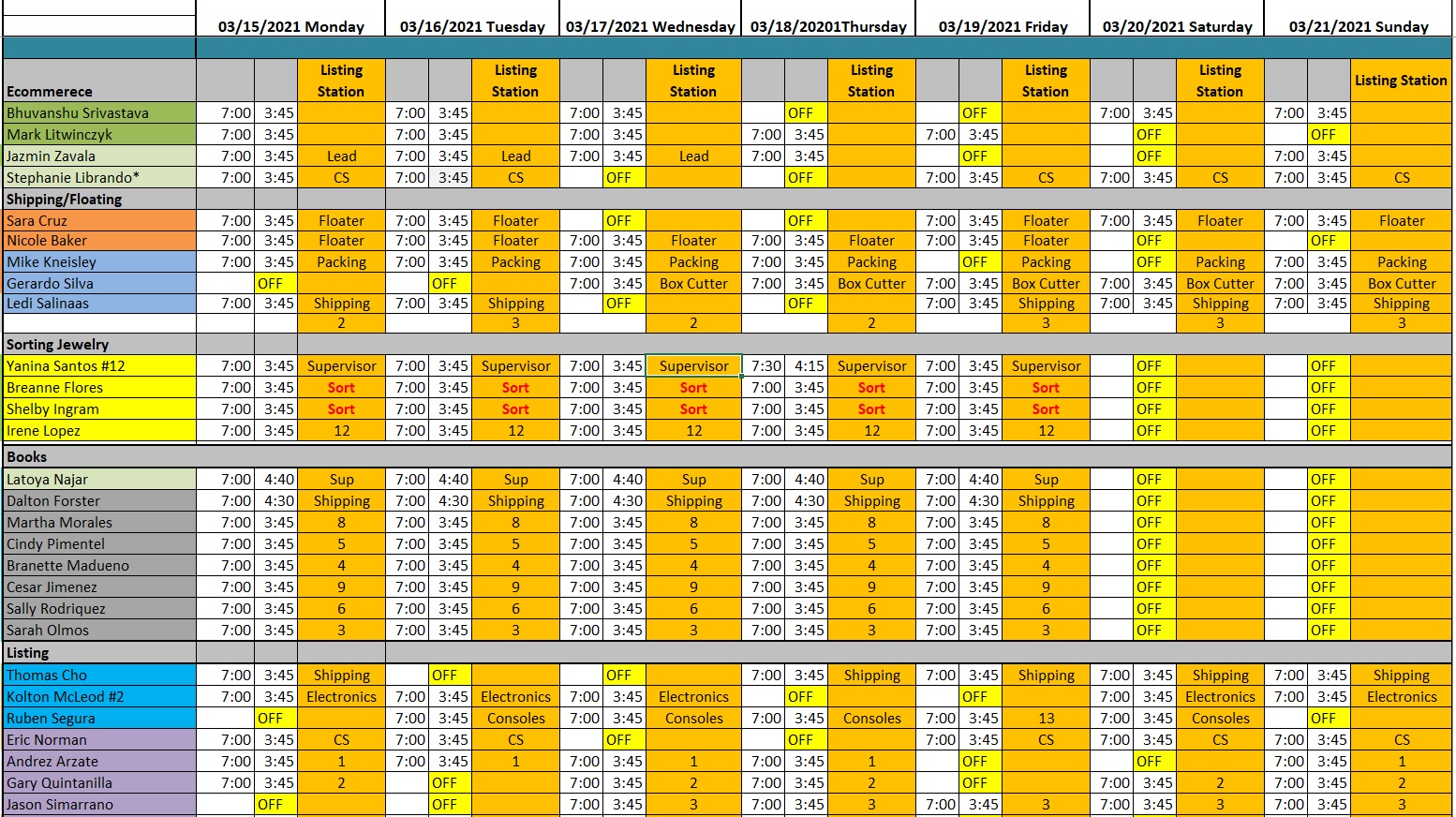 Schedule Wk Ending 4-4-2021 Easter Weekend