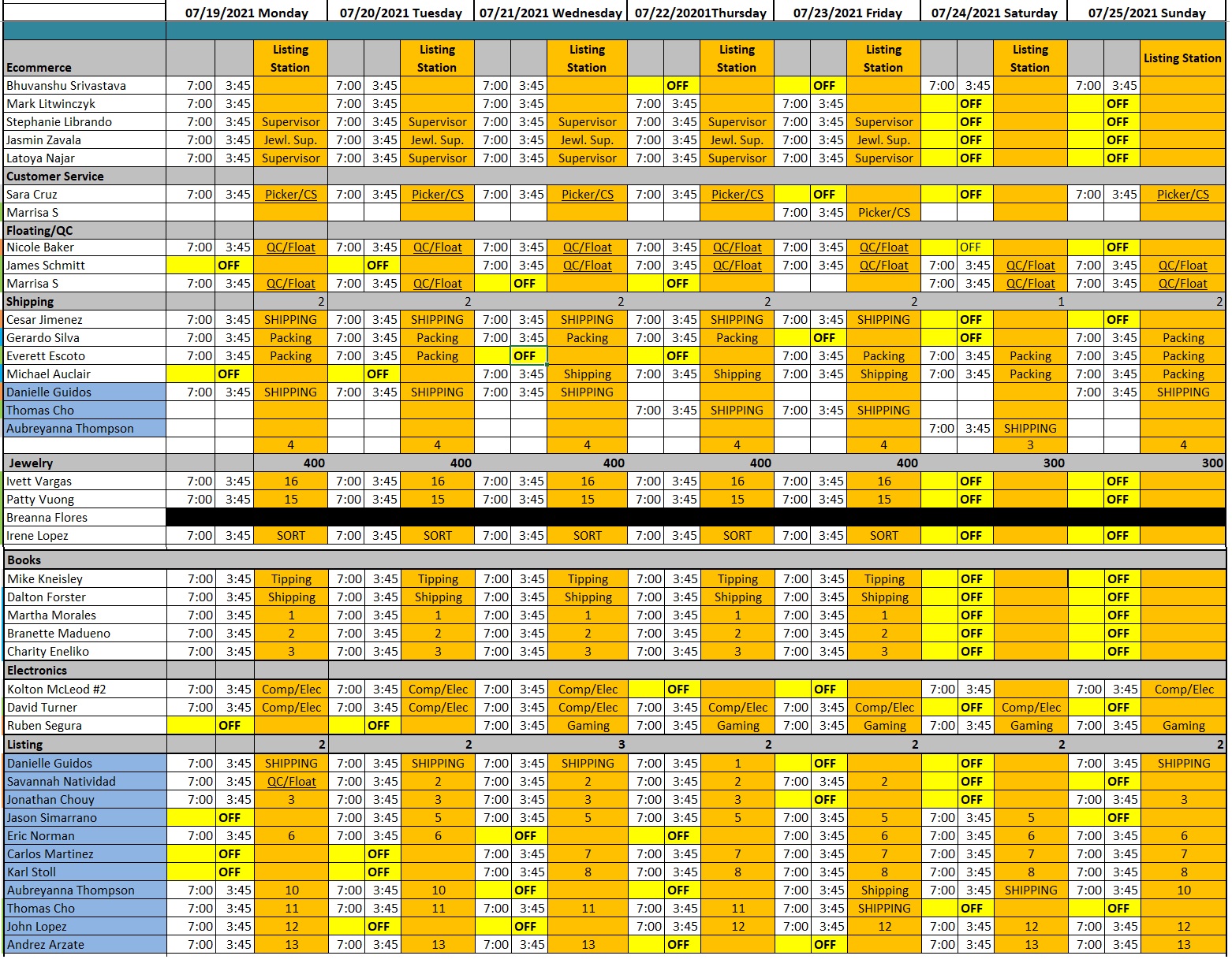 Schedule Wk Ending 7-4-2021 4TH OF JULY WEEKEND