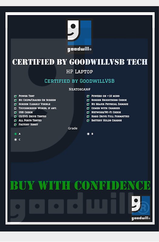 **Laptops tested by GoodwillVSB tech has additional $4.99 handling fee.**